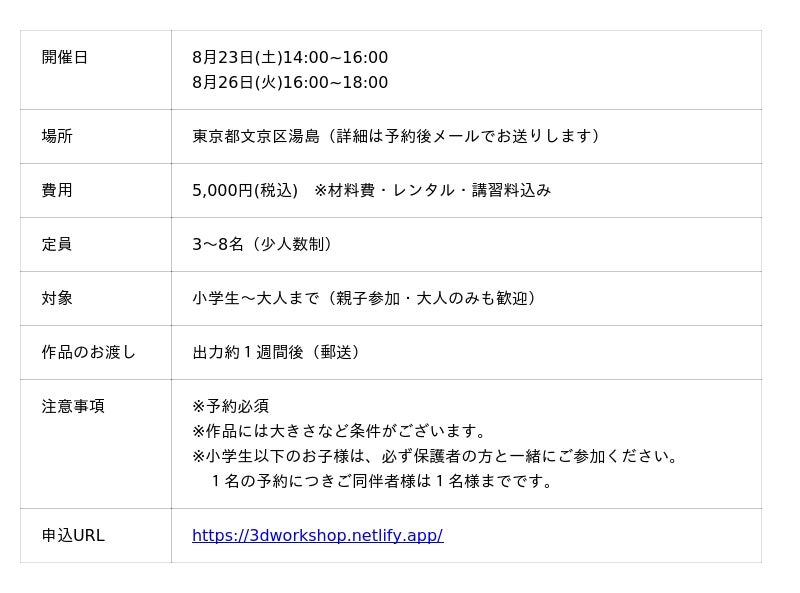 夏休みにぴったり!「親子向け生成AI×3Dプリンターワークショップ」の追加開催が決定