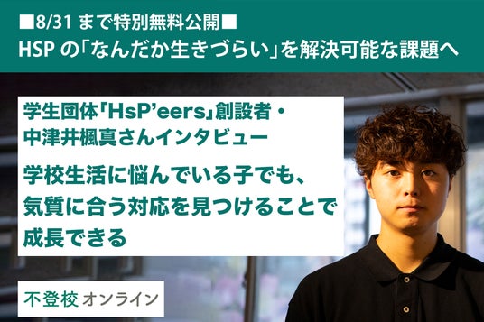 【不登校の親向け記事を特別無料公開】HSP当事者の挑戦。「なんだか生きづらい」を解決可能な課題へ~学生団体「HsP’eers」創設者・中津井楓真さんインタビュー~