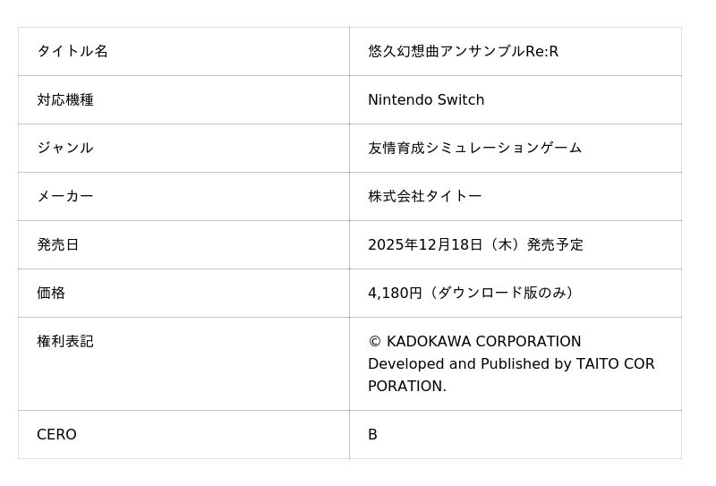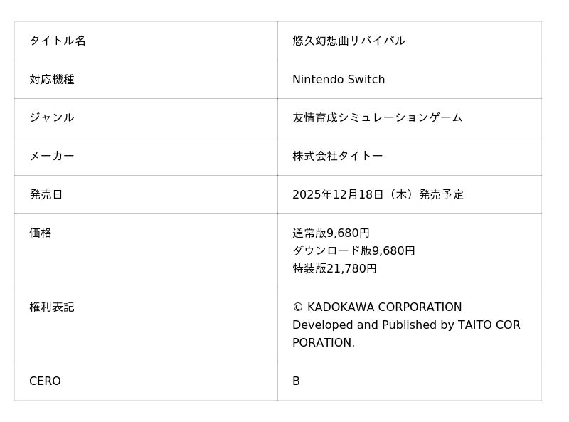 株式会社タイトー(本社:東京都新宿区、以下タイトー)は、あと30日で発売日を迎える、12月18日(木)発売予定のNintendo Switch(TM)用ソフト『悠久幻想曲リバイバル』について、本日より豪華声優陣の直筆サイン色紙が当たるキャンペーンを開催いたします。