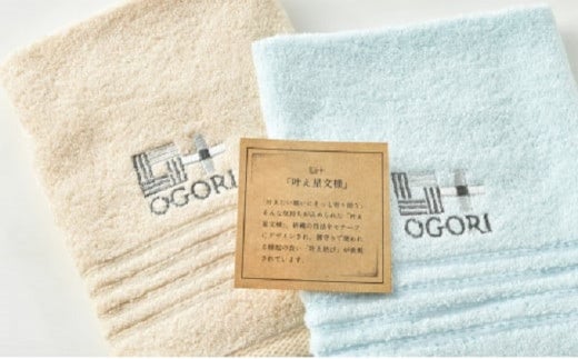 2018年に始まったおごおり七夕プロジェクトの取り組みとして考案された、「夜空に願う七夕の里おごおり」と「織物が盛んであった小郡」ならではの「叶え星文様(かなえぼしもんよう)」。絣織の技法をモチーフに、お守りで使われる縁起の良い「叶え結び」が表現されています。