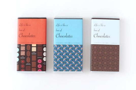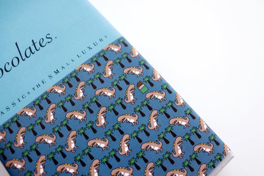 細かく並んだイラストをよく見てみると、板チョコを潜ませた、遊び心溢れるデザインとなっています。