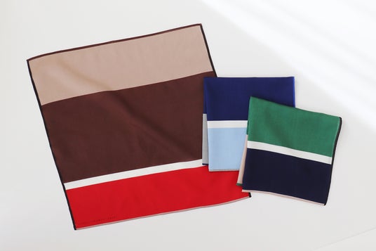 その日のコーディネートに合わせて折り方を変え、カラーを楽しむことのできるハンカチーフです。レッド、ネイビーが新色として加わります。