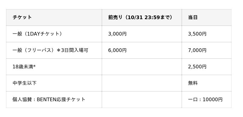 ※開場時間等に変更が生じる可能性がございます。ご来場前に必ず公式WEBサイトやSNSにより最新の情報をご確認ください。