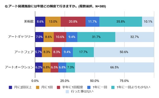過半数が美術館には年1回以上行くと回答。月に1回以上行く人も2割超。