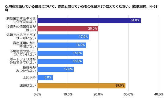 「利益確定するタイミングが読めない」がトップとなったが、一方で3割が課題はないと回答。