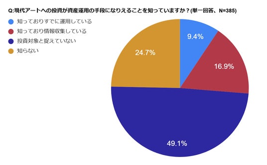 約75%が現代アートを投資対象として知らない・捉えていないと回答。実際に現代アート投資を運用しているのは1割未満。