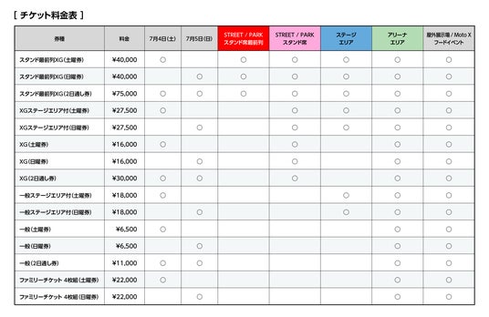 スタンド最前列XG(土曜券) ¥40,000スタンド最前列XG(日曜券) ¥40,000