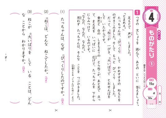国語の読解問題(20回)・算数の文章題(20回)で、文章を理解し、自分の頭で考え、答えを導く力を身につけます。