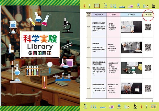 英語では基本用例の英文やリスニングの音声をQRコードから再生。リスニングや音読の反復練習に取り組みやすくしています。理科では実験の理解度を深める動画「科学実験ライブラリー」を用意。付属の小冊子にあるQRコードから手軽にアクセスできます。