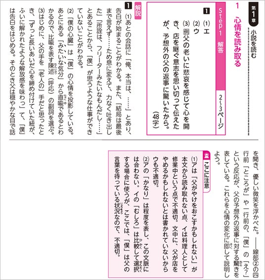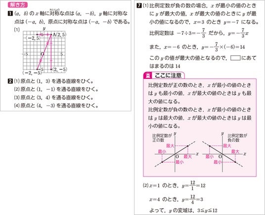 注意すべきポイントは「ここに注意」、「誤りに気をつけよう」や「用語チェック」などでフォーカス。理科や数学では図を用いた解説も加え、数学ではさらに別解も豊富に掲載しています。