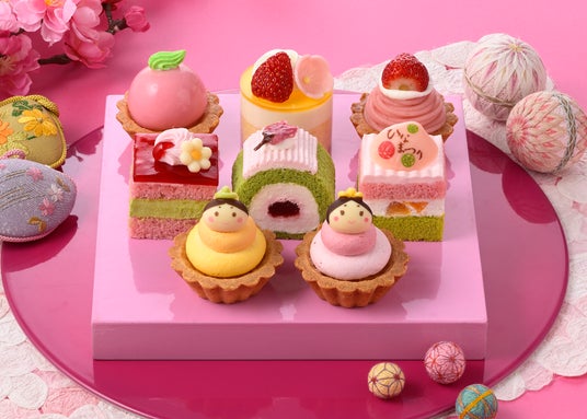 おだいりさまとおひなさまに、桃の節句にちなんだピーチタルトなどのプチケーキをアソートした「ひなパーティー(8個入)」を始め、“ひなまつりカラー”で仕上げた縁起のよい扇形のデコレーションケーキ「ひなおうぎ」など、全7種類をご用意しました。お子さまの好みはもちろん、ご家族やご友人などお祝いのシーンに合わせてお選びいただきやすい豊富なラインアップです。