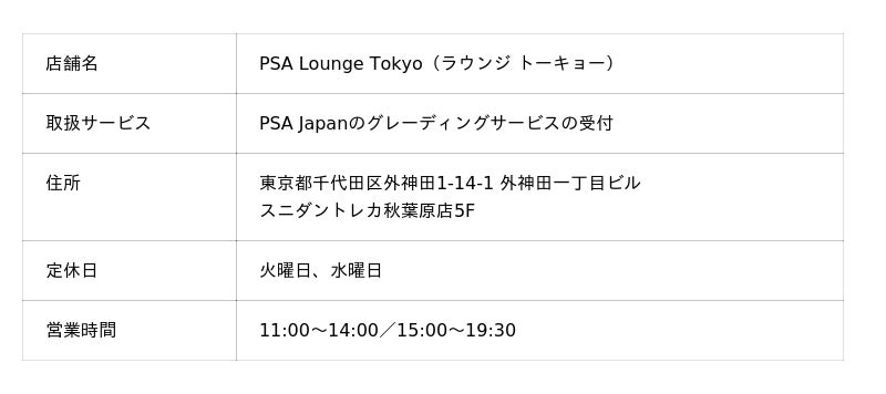 ▪️PSA 公式直営店舗「PSA Lounge Tokyo」での第1号申請について