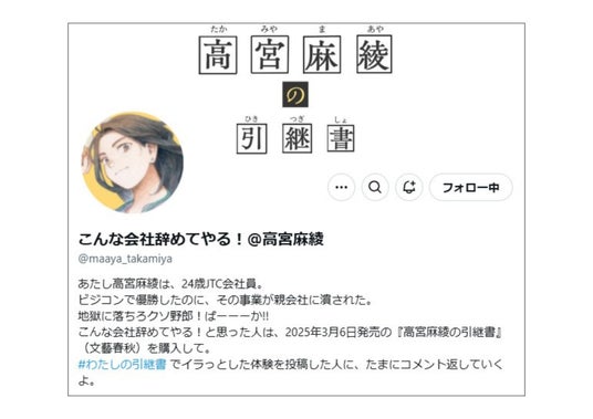 話題のサラリーマン小説『高宮麻綾(たかみや まあや)の引継書』が、ついに本日発売!「特設サイト」と「公式Xアカウント」ではもう、大騒ぎです!!