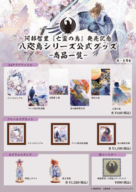 八咫烏シリーズ公式グッズ商品一覧(各書店で取り扱いアイテムに違いがありますのでご注意ください)