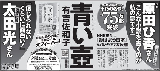 株式会社文藝春秋(本社:東京都千代田区 社長:飯窪成幸)が発行する、有吉佐和子の小説『青い壺』(文春文庫)が、世代を超えた多くの方々に支持され、異例のベストセラーになっています。
