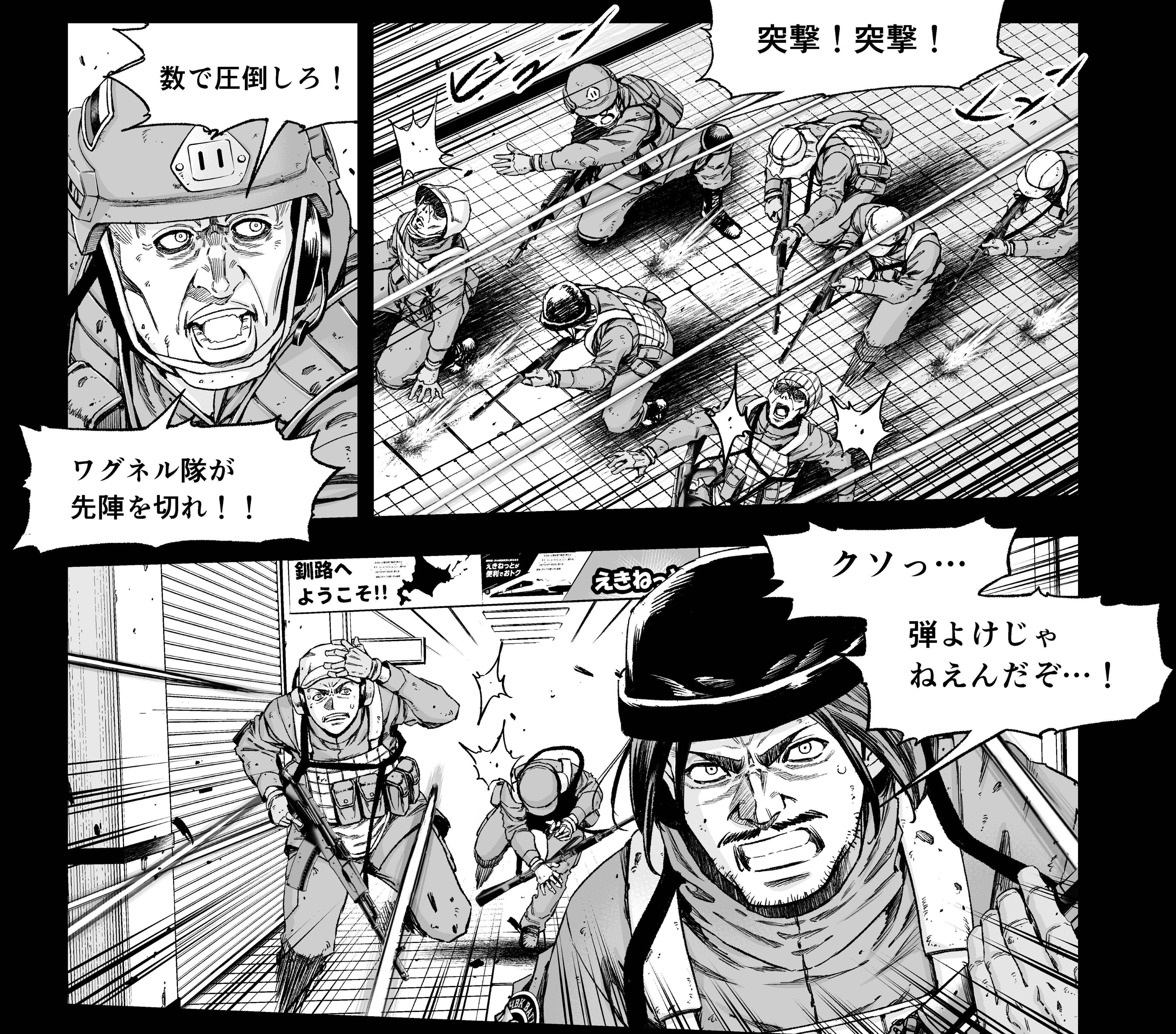 続編の舞台は釧路市。新たな任務を帯びて戦地に戻った安達と、ロシア軍の傭兵部隊であるワグネル隊との、壮絶な市街戦が展開されます。