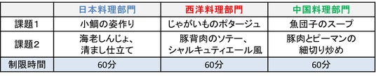 ※【競技時間】8:00~12:35日本料理/8:00~12:30西洋料理/9:00~12:00中国料理