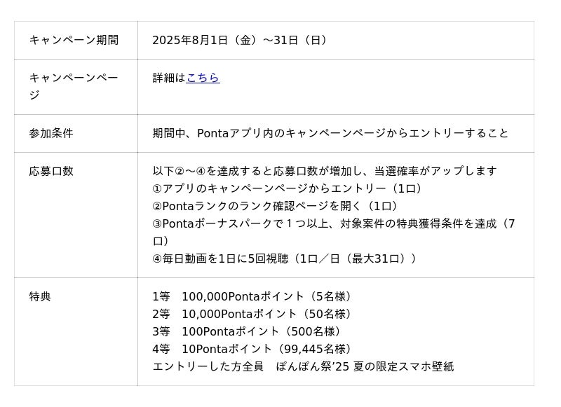 Pontaアプリ ぽんぽん祭’25 夏キャンペーン 概要