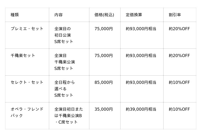 最大20%OFFで4公演(全国公演『カルメン』を除く)を通して楽しめる特別チケット。