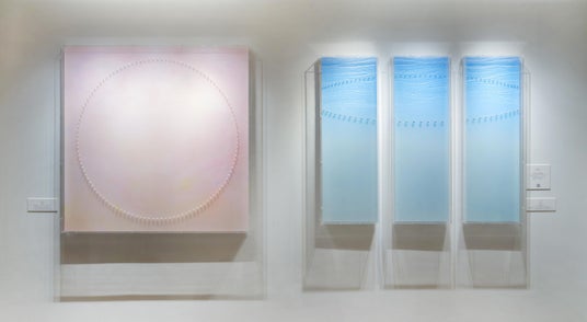 今回は、桜の花や海面の輝きからインスピレーションを得た「garden」と「blue」を展示。