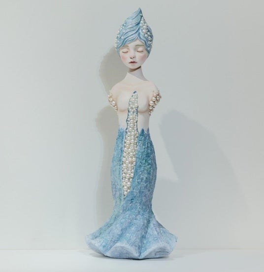生物が見せる自然の曲線に惹かれ、石の粉から作られた粘土を主材に球体関節人形を中心に制作。