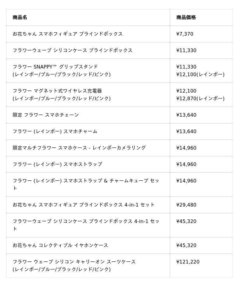 フラワー ウェーブシリコンケースは、村上隆の世界観を基盤にした、遊び心溢れる特別なブラインドボックス形式で展開されます。ボックスの中には、ピンク、ブルー、レッド、ブラック、そして限定のレインボーとゴールドのスマホケースがランダムで入っています。単品での購入に加え、4個セットを選ぶことで、希少なレインボーとゴールドのスマホケースを手に入れるチャンスも広がります。このユニークな仕組みにより、サプライズ要素が加わり、村上隆の世界観とアイコニックな「フラワー」が、これまでにない形で楽しむことができます。