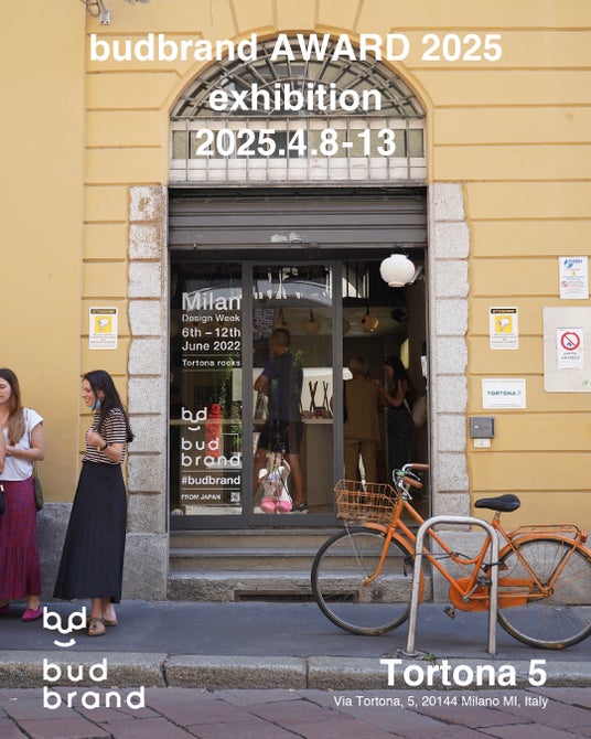 bud brand(バッドブランド)は、次世代クリエイターが世界へ向けて発信するプロジェクトとして、一般社団法人 日本 DESIGN BANKが2016年よりミラノデザインウィーク出展を支援、昨年2024年の出展に続き、トルトーナ地区で単独出展をいたします。今回はbudbrand AWARD 2025 U-35と題し、35歳以下の方を対象にコンテストを開催しました。
