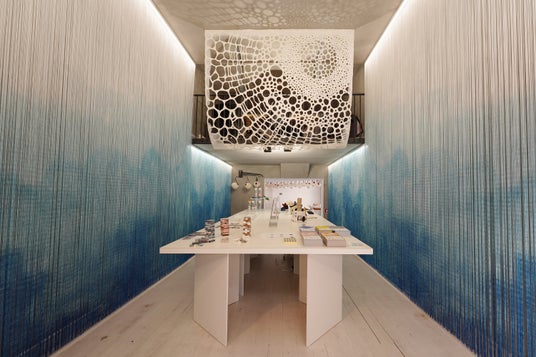 bud brandが出展する会場では、anonimo designに協力していただき、ストリングスカーテンを使用してスタイリッシュの中に日本を感じ取れるような展示会場に協力していただいています。