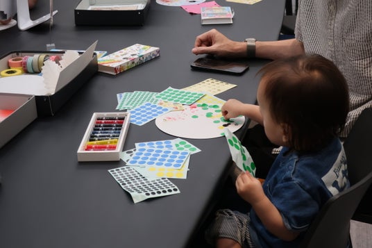 はじめてのシール貼り、どんどん上手になっていくことに感動。
