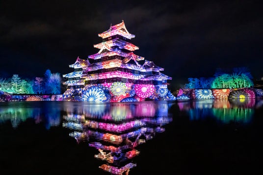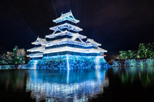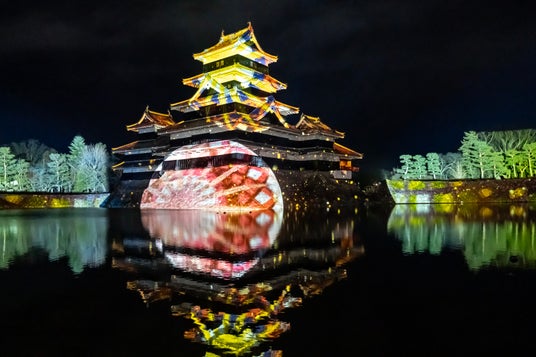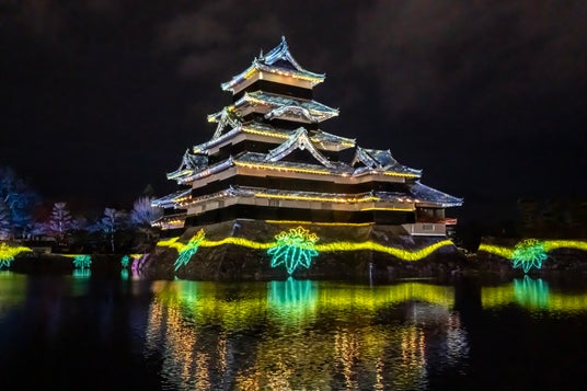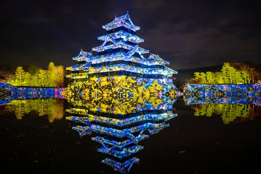 【内容】 現存国宝5天守の一つで五重六階の天守の中で最古の国宝 松本城の天守や石垣に、葛飾北斎や歌川広重による信州ゆかりの浮世絵や豪壮な天守を築いた松本城主・石川数正が描かれた屏風絵が立体的に躍動するデジタルアニメーション、松本てまりや深山織、藍染めなど松本市ならではの伝統工芸をモチーフとしたデジタルアート、春に咲き誇る北アルプスの花々など、ダイナミックで幻想的なプロジェクションマッピング映像を投影します。