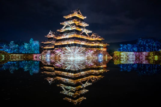 現存国宝5天守の一つ国宝 松本城の天守や石垣にダイナミックなデジタルアート映像を投影。先端技術を駆使し、天守でのプロジェクションマッピングとレーザーマッピングを融合させた迫力ある光の演出に大きな反響。
