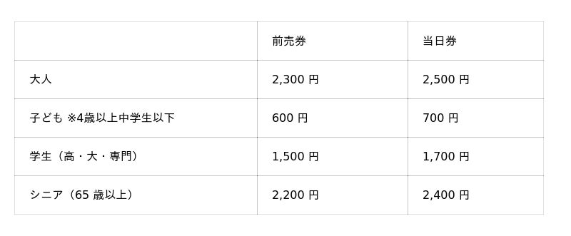当日券 :3月27日(金) 00:00 ~ 6月28日(日)16:30まで