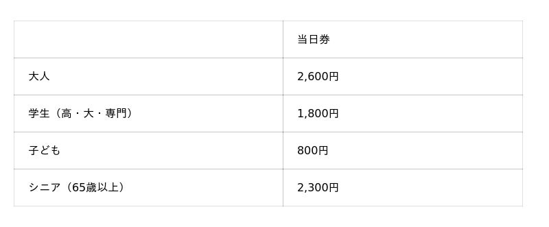 当日券 :3月27日(金) 00:00 ~ 6月28日(日)16:30まで