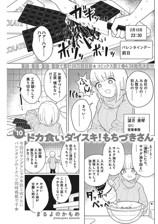 『ドカ食いダイスキ!もちづきさん』(まるよのかもめ)最新第10話は本日2月14日(金)0時更新! 今すぐ「ヤングアニマルWeb」をチェック!!