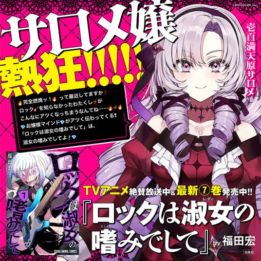 TVアニメ絶賛放送中&最新7巻発売中の『ロックは淑女の嗜みでして』(福田宏)。大人気VTuber・サロメ嬢こと壱百満天原サロメさんより応援コメントが到着しました!