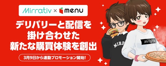 menu株式会社(本社:東京都新宿区、代表取締役:信田篤男)が運営するデリバリーアプリ「menu」は、ゲーム配信プラットフォーム「Mirrativ(ミラティブ)」およびVTuberキャスティングサービス「ぶいきゃす」と連携し、ライブ配信を通じた視聴者参加型のコラボレーション企画を全2弾で実施しています。第2弾として、2026年3月9日(月)より「ミラティブ×menuキャンペーン」を開始します。