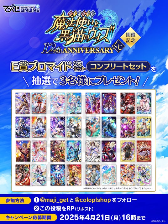 MAGES.が運営するオンラインくじ「MAGICくじ ONLINE(通称:マジくじ)」より、オンラインくじ「クイズRPG 魔法使いと黒猫のウィズ 12th ANNIVERSARYくじ」を3月19日12時より開催中です。