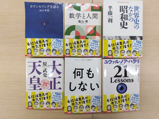 朝日文庫、角川ソフィア文庫、河出文庫、中公文庫、ハヤカワ・ノンフィクション文庫、平凡社ライブラリー(五十音順)の6レーベルが共同で行う、「6社編集長が本気で推す 教養文庫コラボフェア2025」が、1月下旬より、全国の主要書店で順次スタートします。