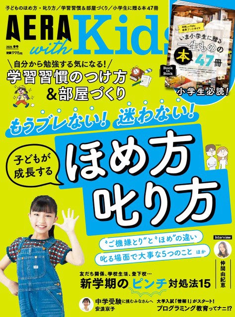 小学生や未就学児のママ・パパに子育て情報を届ける「AERA with Kids 2025春号」(朝日新聞出版)が3月5日(水)、発売されました。巻頭は、「子どもが成長する『ほめ方』『叱り方』」を大特集。さらにいま読みたい「本」を厳選した「小学生に贈る一生ものの本47冊」や、自分から勉強する気になる「学習習慣のつけ方&部屋作り」なども特集。新学期・親入学のお悩みを解決し、明るく子育てに向き合える記事が満載です。
