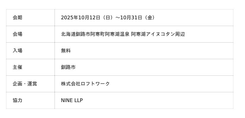 株式会社ロフトワーク(本社:東京都渋谷区、代表取締役:諏訪光洋)は、北海道釧路市からの委託を受け、2025年10月12日(日)より開催する「阿寒アイヌアートウィーク(英語表記:AKAN AINU ARTWEEK)以降、AAAW)」に出展する追加アーティストを発表しました。
