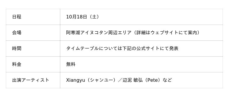 本イベントでは、昨年から継続参加のアーティストに加え、新たに8名のアーティストが参加。阿寒湖エリアをより広域に生かして、文化交流から生まれる作品群が阿寒湖を彩ります。2025年10月18日(土)には、アイヌ民族の伝統楽器と現代音楽が融合する特別なステージを届けるスペシャルイベントの開催も決定しました。また、本イベントの会期中には、多種多様な文化体験プログラムやイベントも同時に開催されます。