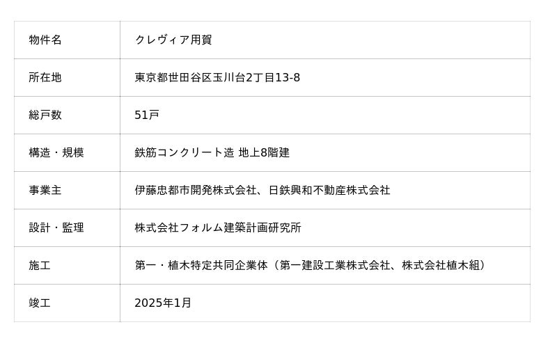 伊藤忠都市開発株式会社(本社:東京都港区、代表取締役社長:松 典男)は、分譲マンション「クレヴィア用賀」が、公益財団法人日本デザイン振興会主催の「2025年度グッドデザイン賞」を受賞しましたのでお知らせいたします。今回の受賞により、当社におけるグッドデザイン賞の受賞は、累計38プロジェクトとなりました。