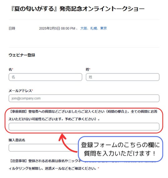 また、現在、対象店舗で書籍購入したあとにもらえるレシートの二次元バーコードから事前に皆さまからの質問を募集しております。奮って質問をお寄せください。