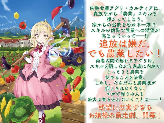 マイクロマガジン社(東京都中央区)は、GCノベルズ『侯爵令嬢アグリ・カルティアは授かったチートスキルでこっそり農業を謳歌する(バレバレ) 1』(小説:ふぁち イラスト:兎塚エイジ)を2025年4月30日に発売いたします。