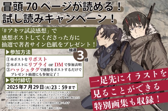 「#アキツ試読感想」で感想をポストすると、抽選で著者直筆サイン色紙をプレゼント!