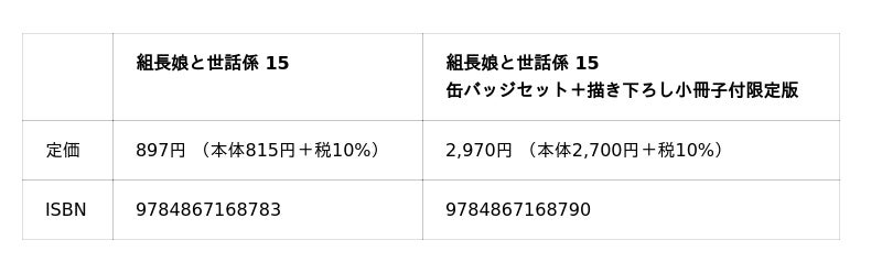 マイクロマガジン社(東京都中央区)は、コミックELMO連載中の『組長娘と世話係』を2025年9月30日よりピッコマ様にて先行配信を開始いたします。また、コミックス第15巻は2025年12月10日に発売いたします。
