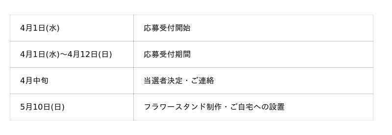 - フラワースタンドのカラーや設置時間は、当選後に個別にご相談