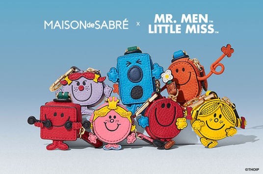 子供時代を思い出すようなプレイフルなMr. Men Little Missアートワークと、高級感溢れる大人なMAISON de SABREレザーアクセサリーを組み合わせた世界にひとつのコレクション。