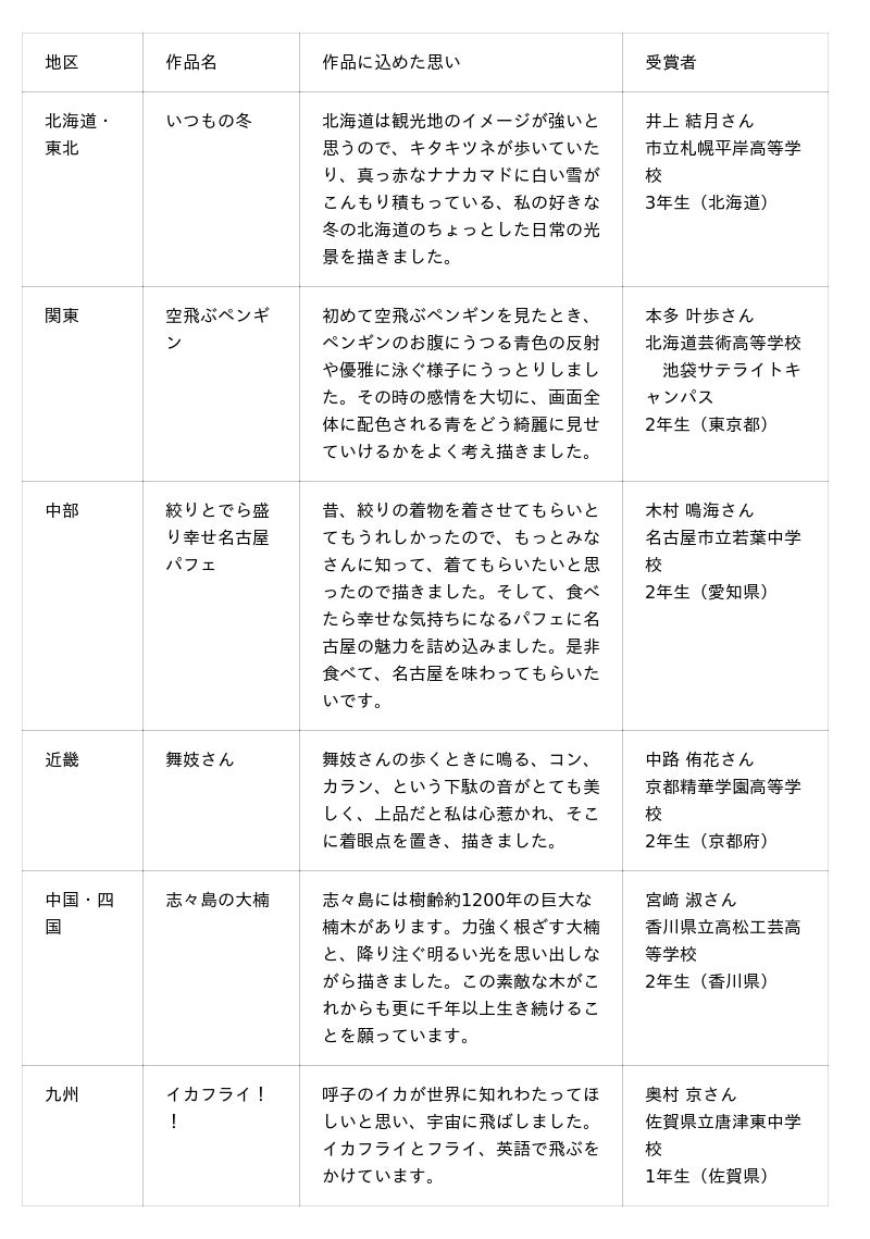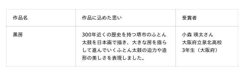 ※作品名、作品に込めた思い、受賞者名は、応募用紙記載の内容です。