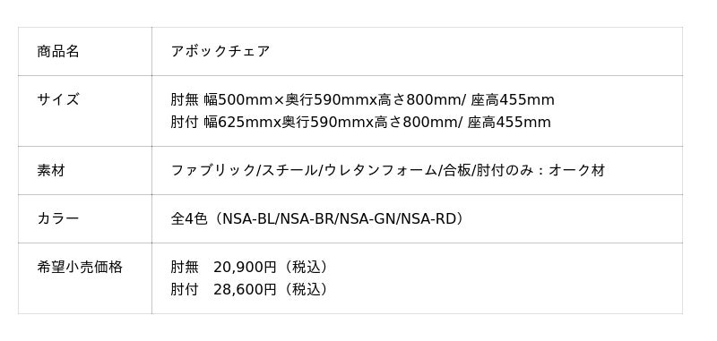 エッジの効いたスチール脚が印象的なアボックチェアにポップなカラーリングのシリーズが追加になりました。張地には、複数の色を織り交ぜた表情豊かなNSA生地を採用。太めの糸を合わせて織り上げた、麻混の織物のような柔らかく立体感のあるマチエールが特徴です。今回の追加により、アボックチェアのバリエーションは24種類へと拡充。インテリアや好みに合わせて自由な選択が可能です。